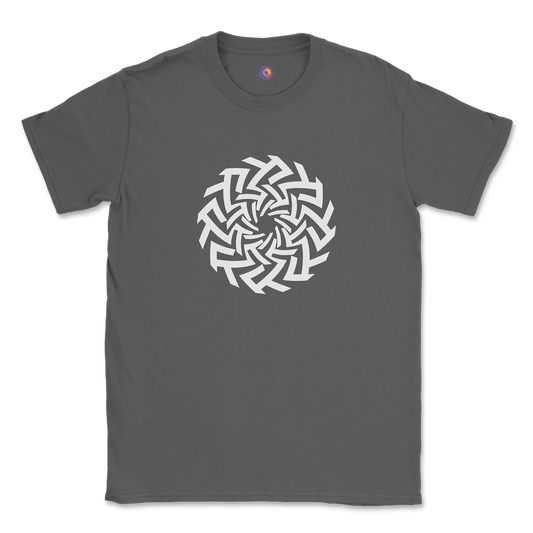 Geometric Spiral Emblem T-Shirt - Modern Optical Art Tee
