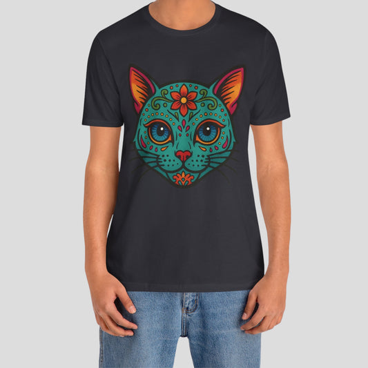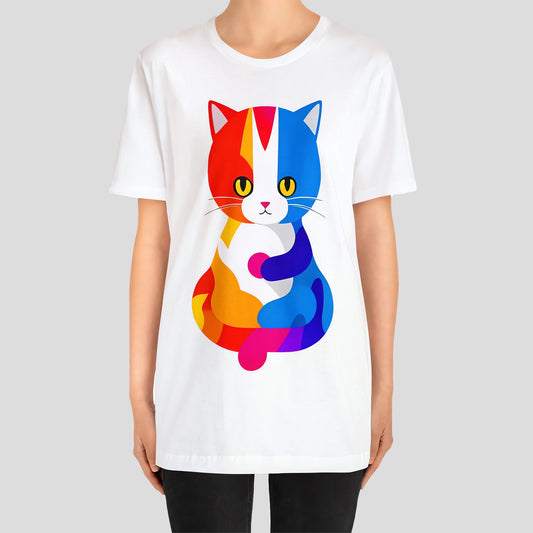 Geometric Cat T-Shirt – Minimal Line Art Design