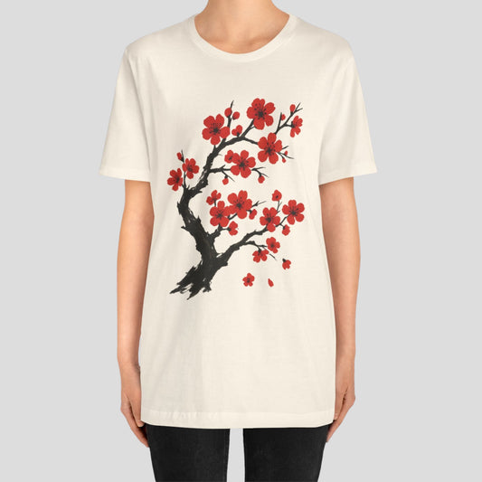 Cherry Blossom T-Shirt – Red Blossoms (Shidarezakura Style)