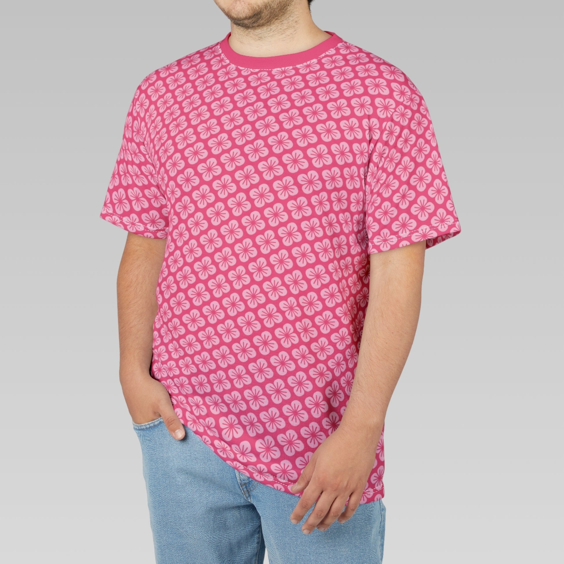 Our Hot Pink Flower Pattern T-Shirt brings high energy with its vibrant base and crisp white floral print. The all-over layout gives this design full coverage without being overwhelming - perfect for those who like their florals fun, fresh, and unapologetically loud.